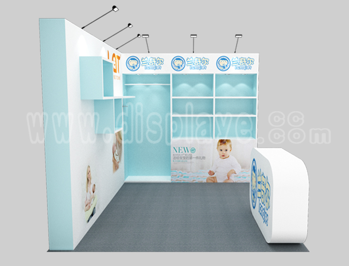 溫馨提示:如你想?yún)⒄者@設(shè)計(jì)圖DIY設(shè)計(jì)構(gòu)思你想要的展臺,此造型結(jié)構(gòu)適用3x3m以下方形展位,你可增加你想要的展示功能或更多的引人注目特裝造型。