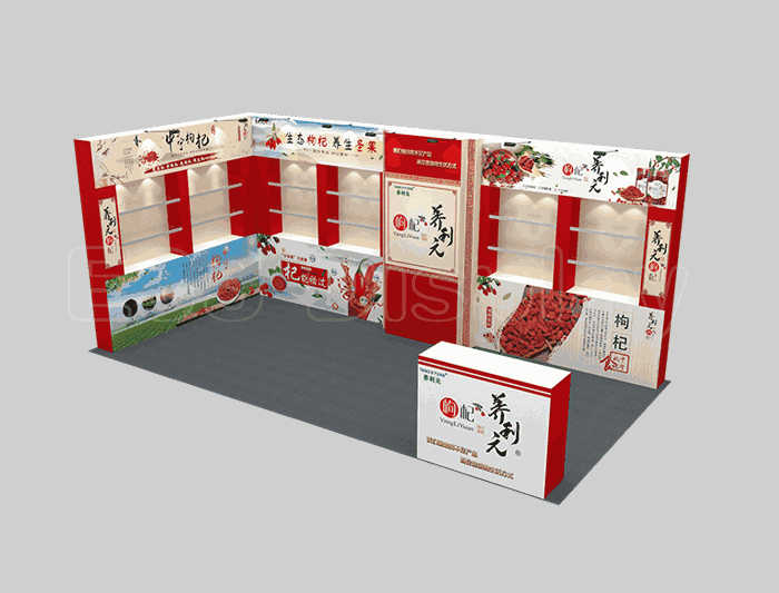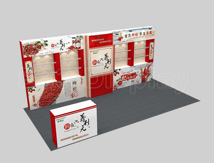 如你想?yún)⒄者@設計圖DIY設計構思你想要的展臺,此造型結構適用3x6m以下方形展位,你可增加你想要的展示功能或更多的引人注目特裝造型。