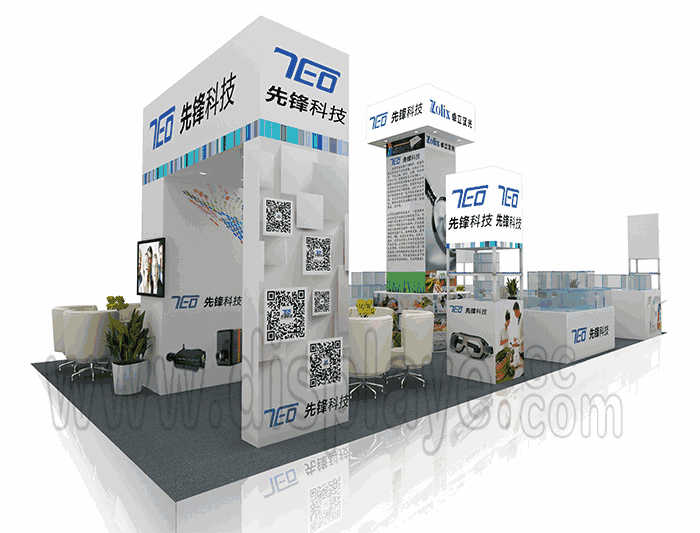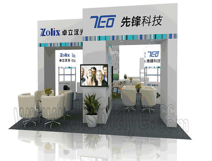 如你想?yún)⒄者@設(shè)計(jì)圖DIY設(shè)計(jì)構(gòu)思你想要的展臺(tái),此造型結(jié)構(gòu)適用6x12m以下方形展位,你可增加你想要的展示功能或更多的引人注目特裝造型。