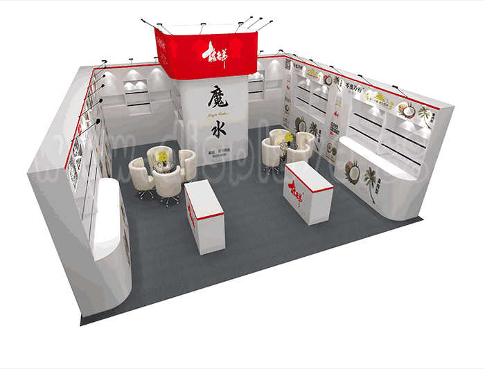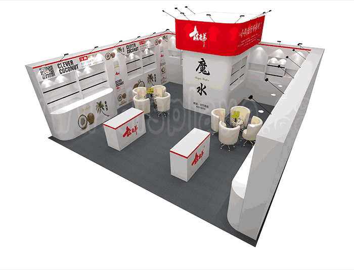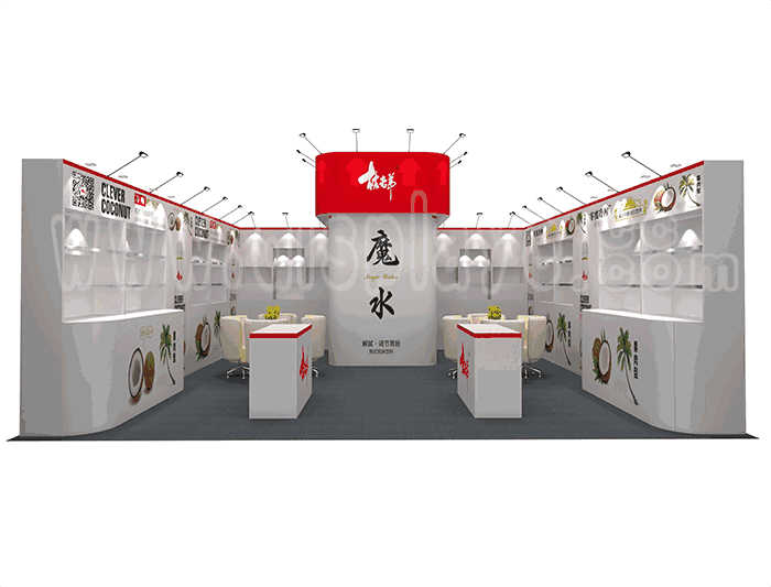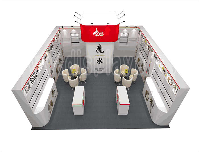 如你想?yún)⒄者@設(shè)計(jì)圖DIY設(shè)計(jì)構(gòu)思你想要的展臺(tái),此造型結(jié)構(gòu)適用 7x7m以下方形展位,你可增加你想要的展示功能或更多的引人注目特裝造型。