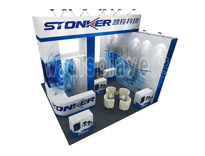 如你想?yún)⒄者@設(shè)計(jì)圖DIY設(shè)計(jì)構(gòu)思你想要的展臺(tái),此造型結(jié)構(gòu)適用6x6m以下方形展位,你可增加你想要的展示功能或更多的引人注目特裝造型。