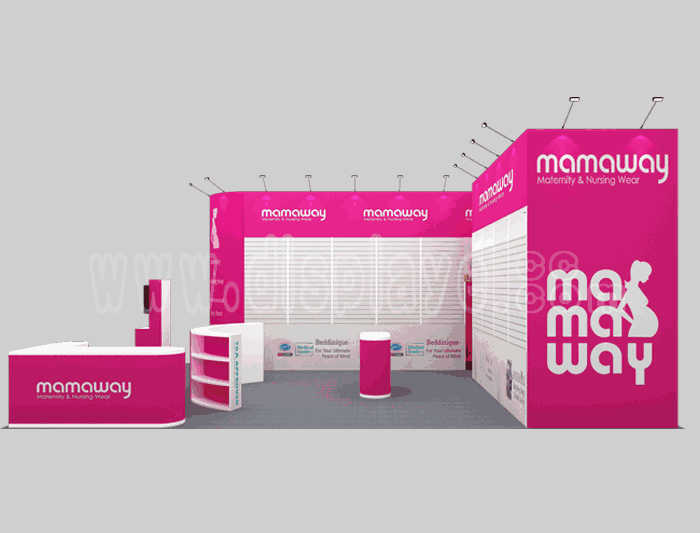 如你想?yún)⒄者@設(shè)計圖DIY設(shè)計構(gòu)思你想要的展臺,此造型結(jié)構(gòu)適用6x9m以下方形展位,你可增加你想要的展示功能或更多的引人注目特裝造型。