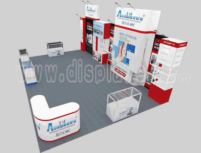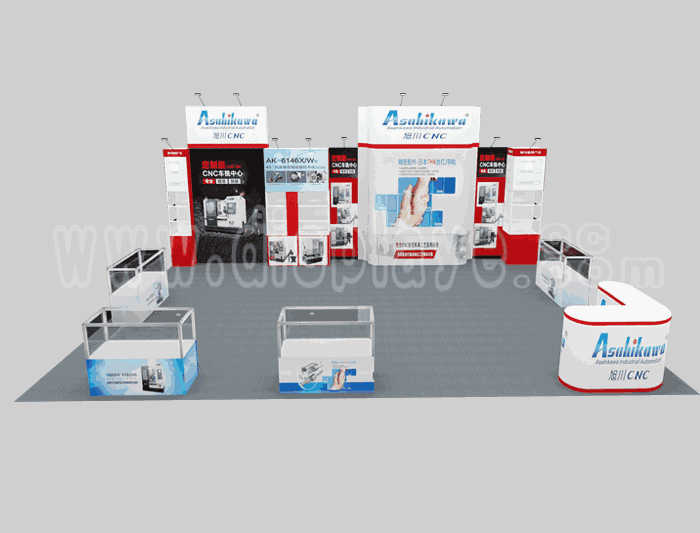 如你想?yún)⒄者@設(shè)計圖DIY設(shè)計構(gòu)思你想要的展臺,此造型結(jié)構(gòu)適用6x9m以下方形展位,你可增加你想要的展示功能或更多的引人注目特裝造型。