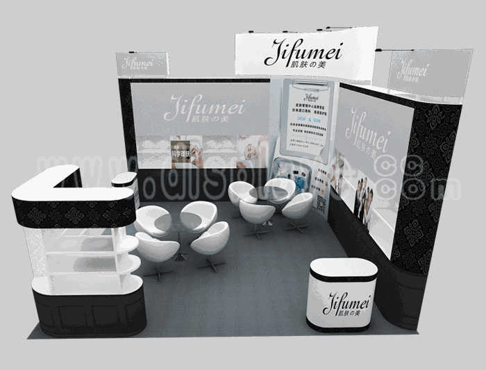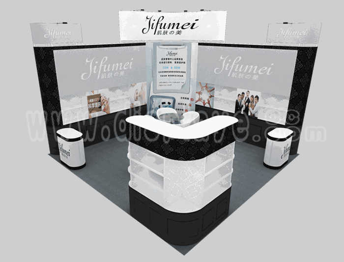 如你想?yún)⒄者@設(shè)計(jì)圖DIY設(shè)計(jì)構(gòu)思你想要的展臺(tái),此造型結(jié)構(gòu)適用 6x6m以下方形展位,你可增加你想要的展示功能或更多的引人注目特裝造型。