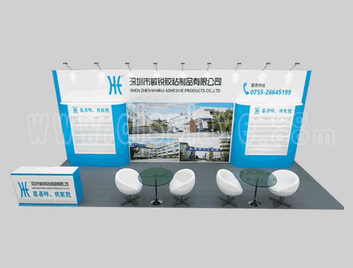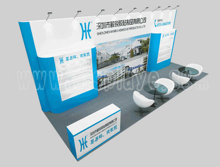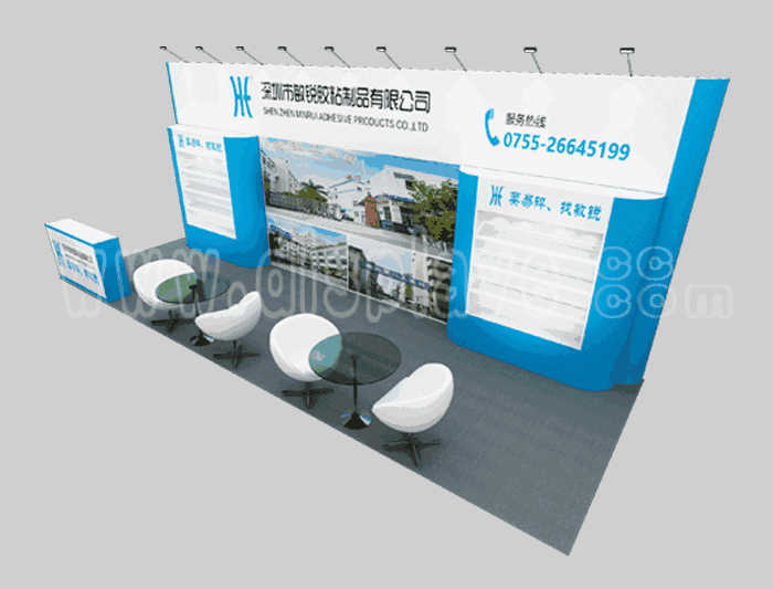 如你想?yún)⒄者@設(shè)計(jì)圖DIY設(shè)計(jì)構(gòu)思你想要的展臺(tái),此造型結(jié)構(gòu)適用 3x9m以下方形展位,你可增加你想要的展示功能或更多的引人注目特裝造型。