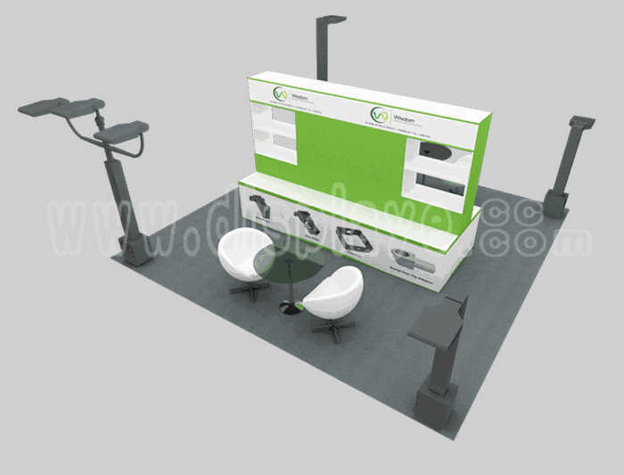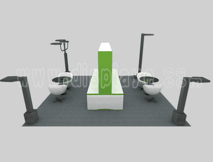 如你想?yún)⒄者@設(shè)計(jì)圖DIY設(shè)計(jì)構(gòu)思你想要的展臺(tái),此造型結(jié)構(gòu)適用 6x6m以下方形展位,你可增加你想要的展示功能或更多的引人注目特裝造型。