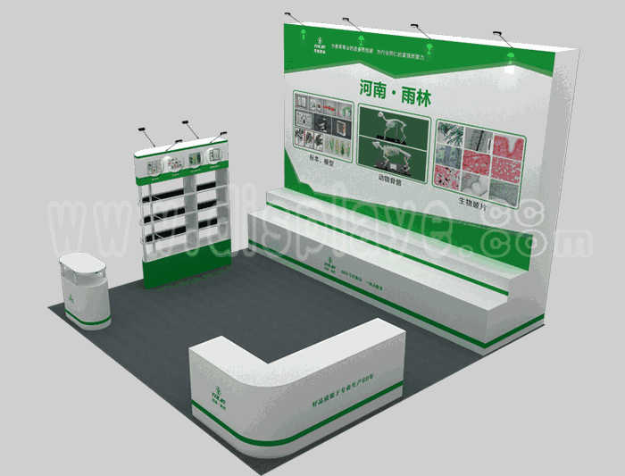 如你想?yún)⒄者@設(shè)計(jì)圖DIY設(shè)計(jì)構(gòu)思你想要的展臺(tái),此造型結(jié)構(gòu)適用 6x6m以下方形展位,你可增加你想要的展示功能或更多的引人注目特裝造型。