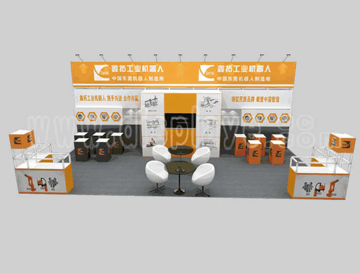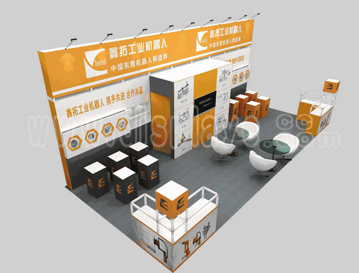 如你想?yún)⒄者@設(shè)計圖DIY設(shè)計構(gòu)思你想要的展臺,此造型結(jié)構(gòu)適用 4x9m以下方形展位,你可增加你想要的展示功能或更多的引人注目特裝造型。