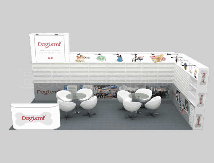 如你想?yún)⒄者@設(shè)計(jì)圖DIY設(shè)計(jì)構(gòu)思你想要的展臺(tái),此造型結(jié)構(gòu)適用 4x8m以下方形展位,你可增加你想要的展示功能或更多的引人注目特裝造型。