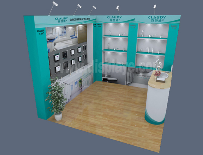 溫馨提示:如你想?yún)⒄者@設(shè)計圖DIY設(shè)計構(gòu)思你想要的展臺,此造型結(jié)構(gòu)適用3x3m以下方形展位,你可增加你想要的展示功能或更多的引人注目特裝造型。