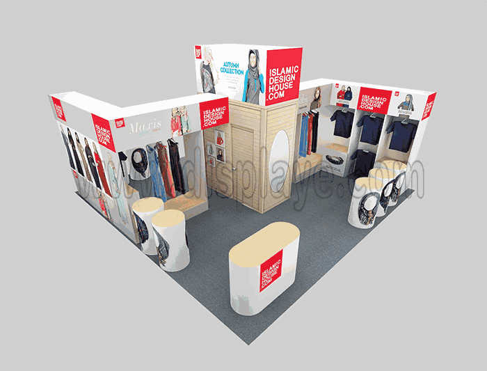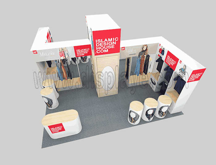 Tips: If you want to DIY design your own stand, this modeling structure applies to 6x6m square booth or below, you can increase more exhibition function or more striking customized modeling.