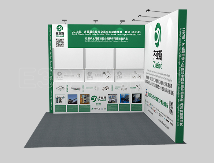 Tips: If you want to DIY design your own stand, this modeling structure applies to 3x6m square booth or below, you can increase more exhibition function or more striking customized modeling.